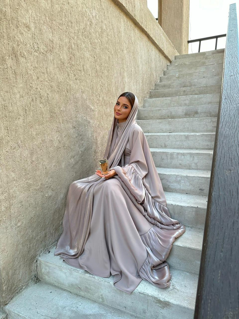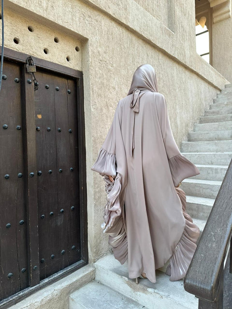 Please note that the silky and shiny sheila/headscarf in the photos of the brown butterfly kaftan is for shoot purposes only